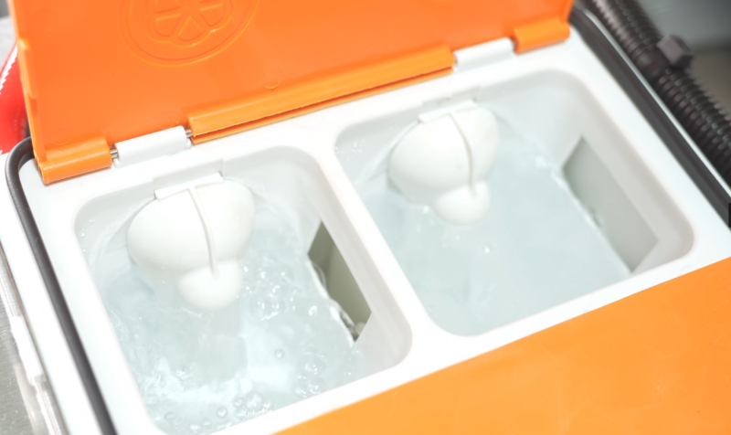Tá gné choitianta ag an dá chineál dáileoirí: ní féidir leo ach glantaigh leachtacha a chur leis, agus ní féidir púdar a chur leis trí na dáileoirí.