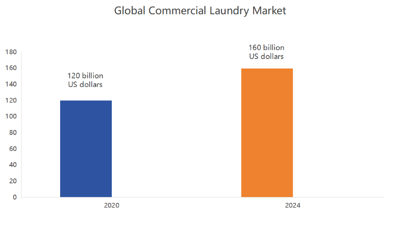 Tá deiseanna fáis struchtúrtha os comhair an mhargaidh níocháin tráchtála domhanda. Léiríonn sonraí gur léim an margadh níocháin tráchtála domhanda agus méid an mhargaidh thriomú tráchtála domhanda ó 12 billiún dollar SAM go 16 billiún dollar SAM ó 2020 go 2024. Is é an CAGR 7.4%.
