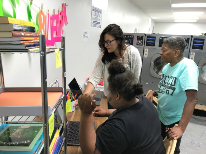 Thug Kira Baker-Doyle, stiúrthóir ar an Ionad Litearthachta ag an gColáiste Oideachais in Ollscoil Illinois i Chicago, le fios gur áit iontach iad na laundromats, mar áit bailithe do bhaill an phobail, chun nós agus suim sa léitheoireacht a fhorbairt. Is gníomhaíocht shóisialta í an léitheoireacht a mbíonn tionchar ag caidrimh idirphearsanta agus ag timpeallacht an phobail uirthi.