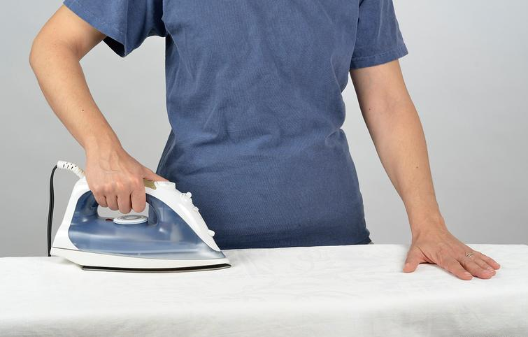 Ba chóir éadach tais a chur idir an iarann agus an fabraic.