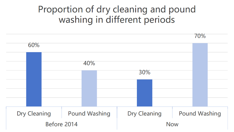 Deich mbliana ó shin, ba é an cóimheas idir an tirimghlanadh agus an níochán póna ná thart ar 6:4. Mar sin féin, tá an cóimheas idir an tirimghlanadh agus níochán punt thart ar 3:7 anois.
