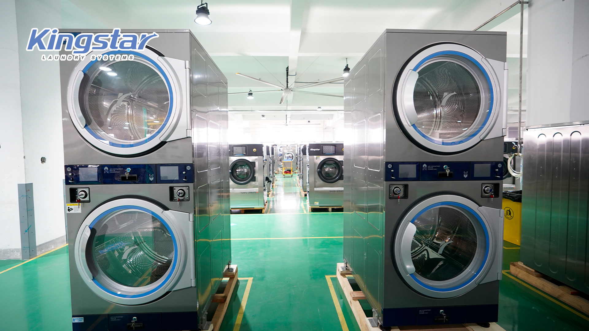 Is cineál sonrach de threalamh níocháin mona-oibrithe iad triomadóirí cruachta cruachta a chomhcheanglaíonn washer agus triomadóir nó triomadóirí iolracha i socrú ingearach. Tá an chumraíocht seo an-úsáideach in áiteanna ina bhfuil spás urláir teoranta, mar sheomraí níocháin árasáin, seomraí níocháin beaga tráchtála, nó spásanna dlúth-níocháin. Trí aonaid a chruachadh, is féidir le hoibreoirí líon na meaisíní atá ar fáil a uasmhéadú gan lorg an limistéir níocháin a leathnú. Ní hamháin go n-ardóidh an dearadh seo an cumas oibriúcháin ach feabhsaíonn sé éifeachtacht sreabhadh oibre freisin, rud a ligeann d'úsáideoirí bogadh go tapa idir meaisíní le linn tréimhsí gnóthacha.